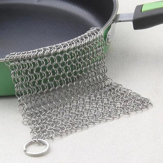 1Pc Cast Iron Scrubber Brush Steel Cleaning Brush Cleaner Mail Wash Cast Iron Cleaner Kitchen Sponge Cleaning Chainmail Scrubber