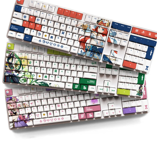 108 Keys Genshin Impact Theme Keycaps PBT Anime Keycap Mechanical Keyboard Cap For Cherry MX Multi-role Game Keyboard Decor Gift