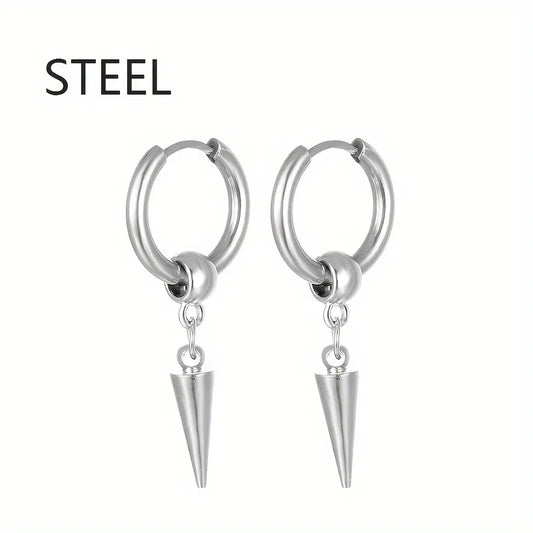 1pairs Fashion Stainless Steel Men's Cone Pendant Earrings, Retro Punk Style Hip-hop Dangle Earrings For Men
